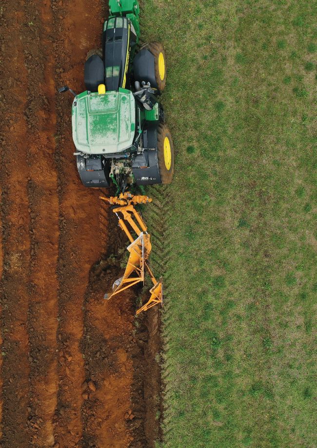 With a working depth of up to 80–110cm, the MORO MVP28A can invert even deep topsoil or humic layers on ground where conventional machinery simply can’t penetrate. This capability makes it an invaluable tool for large-scale BNG schemes as well as land restoration, rewilding, and environmental management projects. Coupled to a big John Deere 8R, it makes for an impressive sight and delivers impressive results.