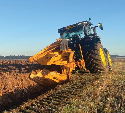 The mega plough is a MORO Aratri MVP28A Extreme deep plough. A giant piece of equipment weighing in at nearly two and a half tons, and standing over 2m tall, which requires a tractor of over 400hp just to operate it. The MVP offers a rapid solution for soil inversion works, and is particularly suited to biodiversity net gain (BNG) schemes, ecology projects, habitat creation, vineyard establishment, and other specialist sites where mineral soil needs to be exposed or where topsoil layers require deep burial and where ground conditions would challenge other makes and models of plough.