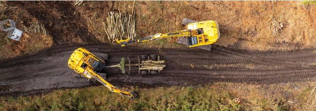 On this site, there are several silver birch, oak and pine trees hindering the expansion of the peatland. The new 150X HD was working to fell and remove the trees with minimal disturbance to the ground and was utilising a specialist attachment to take down the trees without them touching or disturbing the ground.