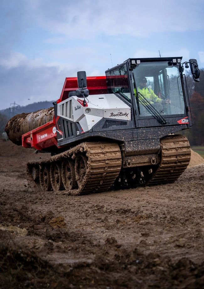 The PowerBully track carriers are also suitable for transporting personnel, materials and bulk material to job sites that are inaccessible to wheeled vehicles. They can master steep slopes effortlessly with a 60% climbing capacity and can be used year round, on almost any surface, and under difficult weather conditions.