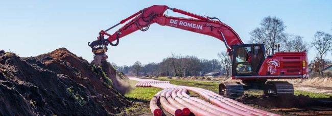 SuedLink is one such infrastructure project that makes almost any other job look small by comparison. Set to be the world’s longest underground power cable, SuedLink will transport wind power 700 kilometers from northern Germany to Bavaria and Baden-Württemberg. Construction on the €11 billion cable began at both ends of the pipeline simultaneously and needs to stay rigidly on-plan if the two ends are to meet harmoniously in the middle – so no pressure, then, for main earthworks contractor De Romein Group.