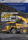 The truck is powered by the 615-kw (825-hp) Cat C27 engine and comes in different emissions configurations to meet different global regulations. The U.S. EPA Tier 4 Final/Stage V version displayed at bauma offers better fuel efficiency than previous models, with advanced electronic powertrain controls that deliver faster cycles and reduced road maintenance. The truck’s enhanced ride and handling allow for higher speeds on curves and driving in higher gears, which directly reduces fuel consumption during the cycle.