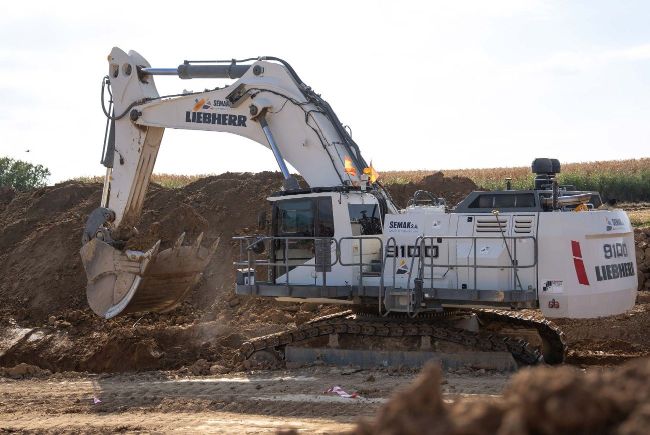 While the big yellow Liebherr dozer stands out in the greenery surrounding it, just a few hundred metres away Semak SA’s Liebherr R 9100 excavator also makes a bold statement.