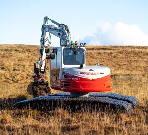 The Takeuchi machines were acquired through a rigorous tendering process and were specifically bought for the peatland restoration project. “We operate in challenging conditions where low ground pressure machines are essential,” says RSPB NI’s Andrew Gallagher.