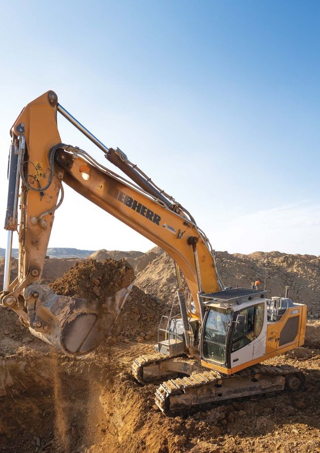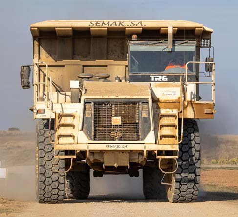 While the big yellow Liebherr dozer stands out in the greenery surrounding it, just a few hundred metres away Semak SA’s Liebherr R 9100 excavator also makes a bold statement.
