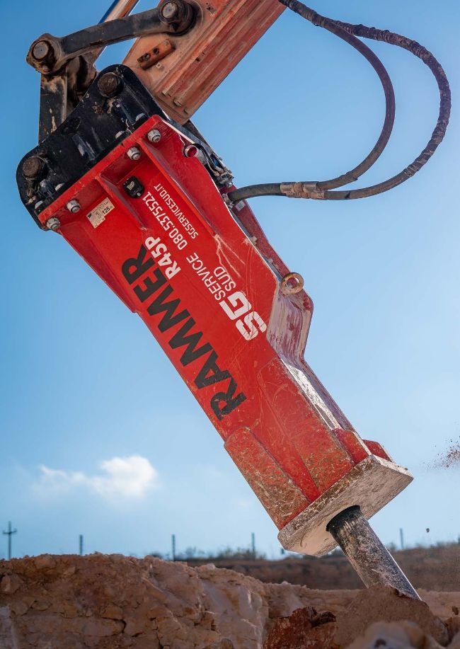 Walter told us that the quarry had been using hydraulic hammers for more than 35 years and had been actively searching for a more productive and reliable solution. It was a search that eventually led them to invest in a RAMMER R45P, supplied by SG Service Sud, the authorized RAMMER dealer and service center for the Puglia and Basilicata regions.